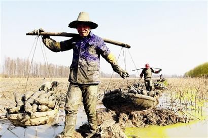 收藕是个时间跨度长的活,要一直持续到明年六一前。这期间,村民们几乎天天来收藕。村民介绍,冬天冰雪天结冰时,浸在藕池泥水中的莲藕也不会变坏。