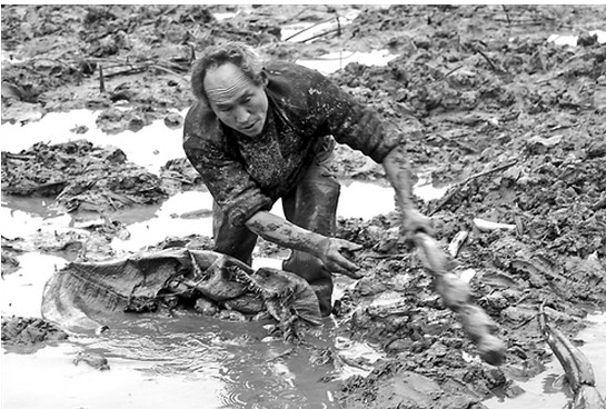 冬天的挖藕人