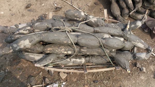 现挖出的莲藕,又肥又长,煨汤极品
